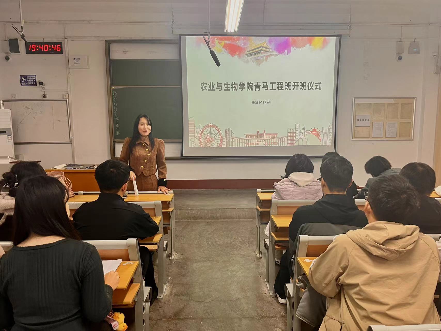 董雪在致辞中开宗明义,深刻阐述了“青马工程”在新时代背景下的战略意义。她指出,“青马工程”绝非普通培训,而是一场深刻的思想淬炼与政治洗礼,是永利3044noc落实“为党育人、为国育才”使命的关键一环。在新起点上,她希望全体学员筑牢信仰之基,不断提升政治判断力,深刻把握马克思主义中国化时代化的最新成果,自觉成为习近平新时代中国特色社会主义思想的坚定信仰者和忠实践行者。同时,要砥砺成才之志,增强理论学习能力,在深学细悟中掌握思想武器,在研析辨理中构建系统思维。更要勇担复兴使命,提升实践创新力,把理论学习同专业实践、社会服务紧密结合起来,积极投身乡村振兴的广阔舞台,施展才华、建功立业。