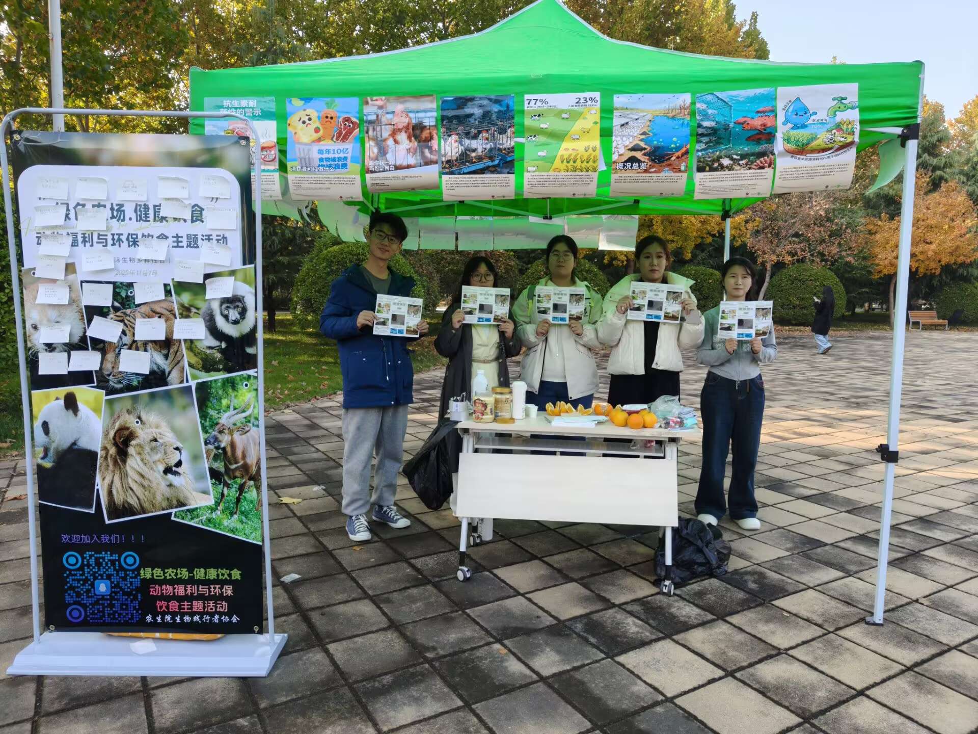 为引导同学们深入了解食物的碳足迹,推动绿色、健康的生活方式,11月8号,永利3044noc于东校区逸夫图书馆南侧广场成功举办“地球绿色农民—农场动物与环境保护”公益活动。
