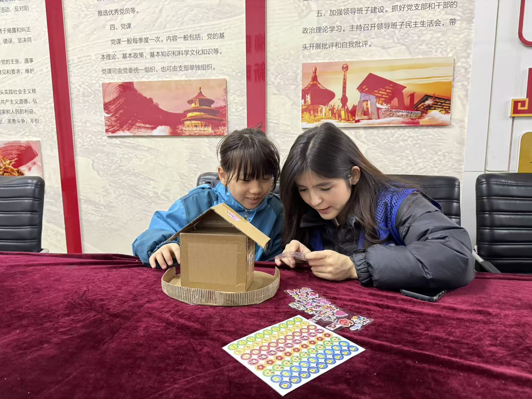 科普讲解环节,志愿者向小朋友们普及环保小知识,用“回收一个纸盒就能减少五克垃圾”的小事例,让孩子们直观感受到环保可从身边点滴做起。接下来,小朋友们借助纸盒模块、彩纸、胶水等材料,在志愿者引导下自由构思城堡设计,充分发挥想象力,制作出公主城堡等多种风格的作品。小朋友们相互协作、互帮互助,团队精神也在潜移默化中得到培养。大家用马克笔、贴画等为城堡增添独特装饰,画上喜爱的图案、贴上闪亮的贴纸,让纸盒城堡变得五彩缤纷。
