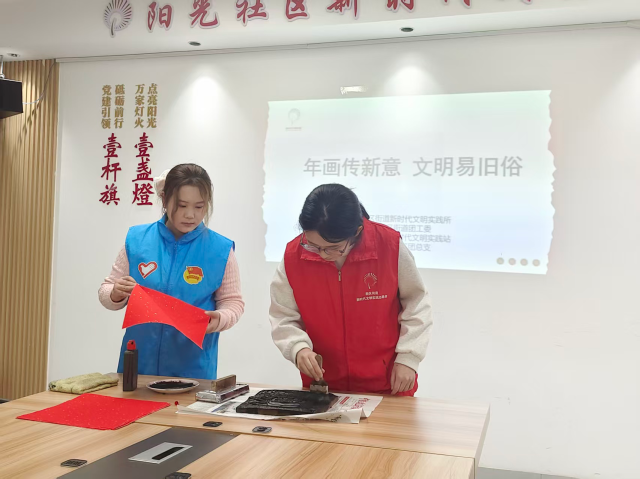 活动期间,服务队成员在社区工作者带领下迅速投入各项服务。在文化惠民环节,队员们协助社区开展木版年画拓印与新春送福活动,亲手将承载美好寓意的年画和春联送到居民手中,让传统文化在社区焕发新活力。在普法宣传环节,队员们开展《反有组织犯罪法》专题宣讲,结合典型案例向居民讲解法律知识,耐心解答安全防范与权益保护相关问题,切实提升居民法治意识。