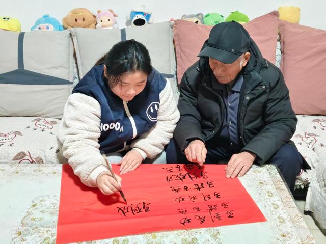 活动伊始,队员们走进居民家中,与老人一同品赏书法、共话年俗,在笔墨书香间感受传统年俗的文化温度;与邻里共读经典,在书页翻动中分享古人的处世智慧。随后,队员们展示相关手工艺品,结合专业视角,讲解传统工艺背后蕴含的生物智慧与匠心坚守,并围绕济南泉城文脉等本土文化故事,与居民交流地域文化的独特魅力。
