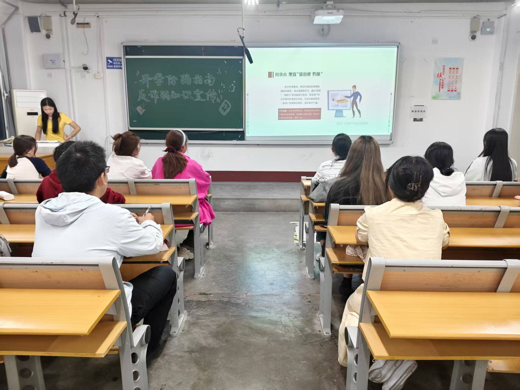 活动伊始,主持人通过防诈调研摸清学生反诈认知“底数”。采用谈心谈话、问卷调研等方式,围绕“是否遭遇过诈骗套路”“对新型诈骗手段的辨识程度”等问题展开调研。结果显示,多数学生对传统诈骗形式有一定了解,但对“AI换脸诈骗”“虚假投资返利”等新型手段警惕性不足,这为活动的针对性开展提供了依据。