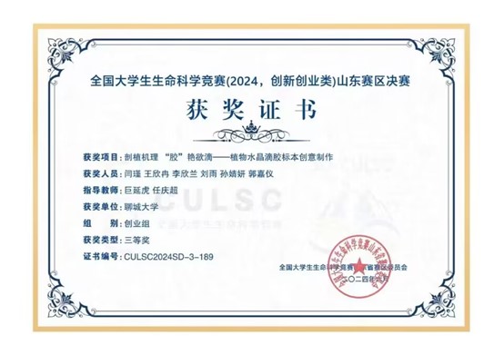 永利3044noc刘雨同学在全国大学生生命科学竞赛山东赛区中荣获三等奖,对该获奖同学予以祝贺表彰。
